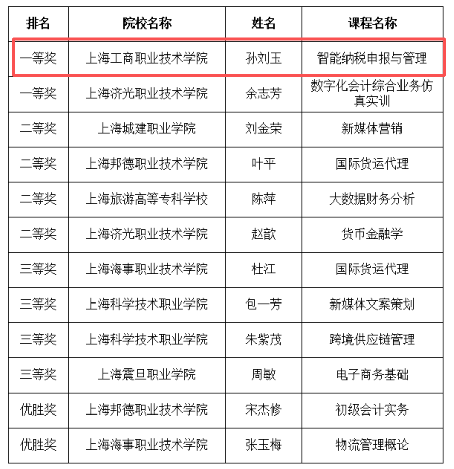 - [01-16]·喜报:《智能纳税申报与管理》荣获上海市高职高专经济类专业优质课程一等奖
