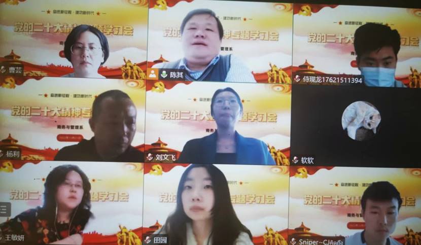 2022年10月21日下午,商务与管理系党支部组织全体教职工通过腾讯会议平台进行在线二十大理论学习。