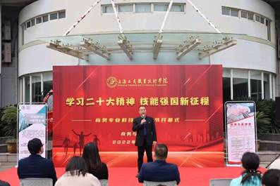 为学习贯彻落实党的二十大精神,顺应实践教学改革,大力推进职业教育,培养与时俱进、德才兼备、掌握更多实用技能的全面发展人才,我系于2022年11月24日上午11:30在青浦校区4号实训楼前举办上海工商职业技术学院商务与管理系商务专业群技能文化节开幕式,副校长王中强出席活动、相关职能部门和各院系领导参加活动。