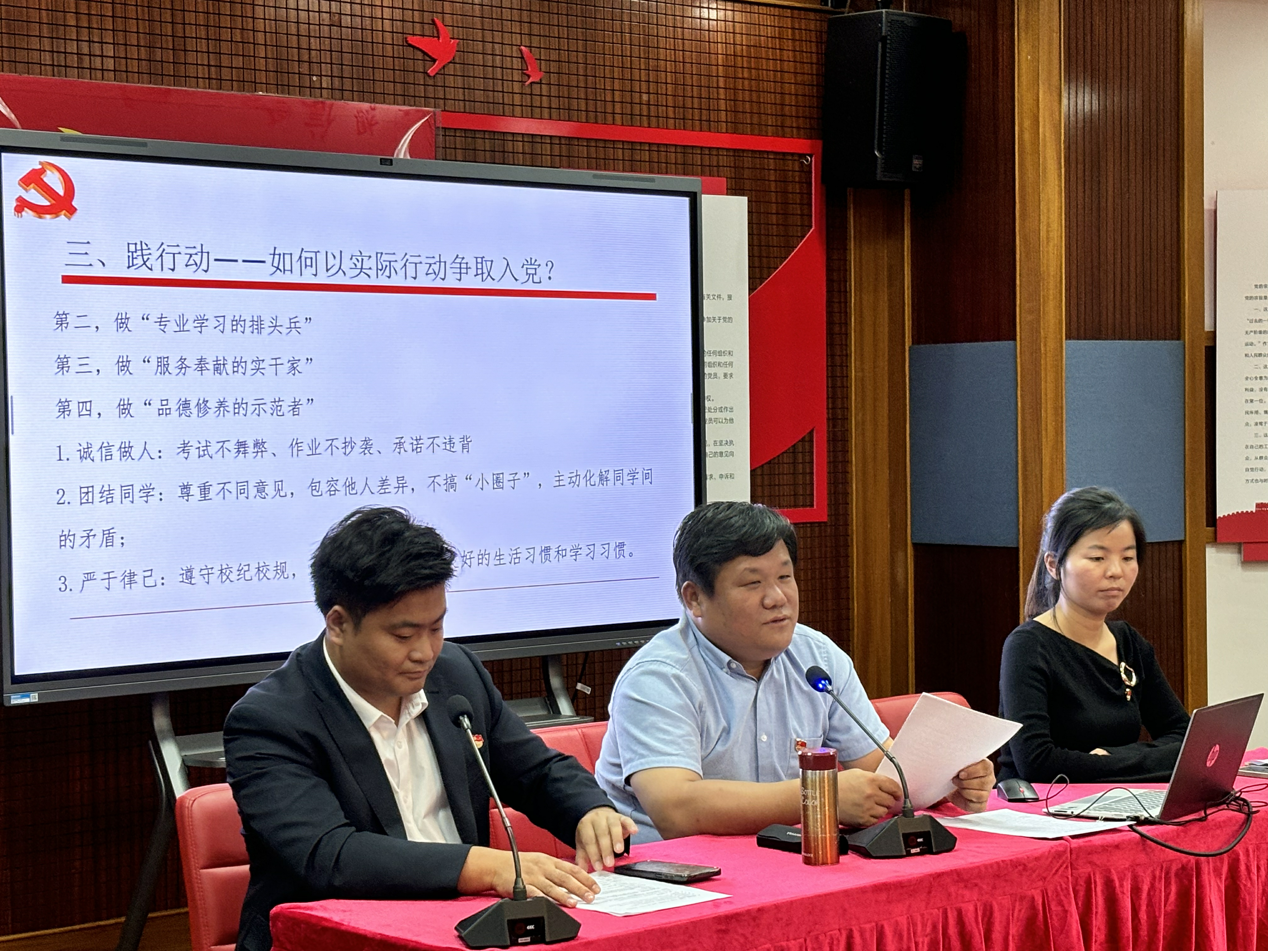 动员讲话后,陈其以“端正入党动机,以实际行动加入中国共产党”为题,为新生讲授开班第一课。他从“入党动机的本质内涵”、“当前青年学生中常见的认知误区”、“怎样以实际行动践行入党初心”三个维度展开,通过列举优秀党员的先进事迹、剖析青年成长案例,深入浅出地阐释了“为人民服务”的根本宗旨。他特别强调,端正入党动机不是一时的思想表态,而是要落实到日常的学习、志愿服务与集体生活中,做到“思想上先入党、行动上跟党走”,为新生指明了今后努力的方向。