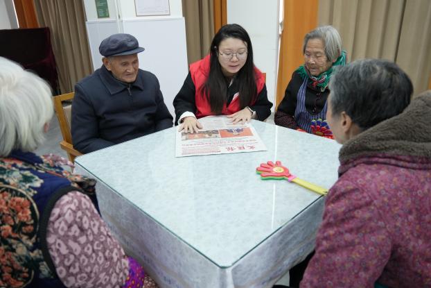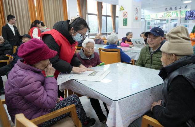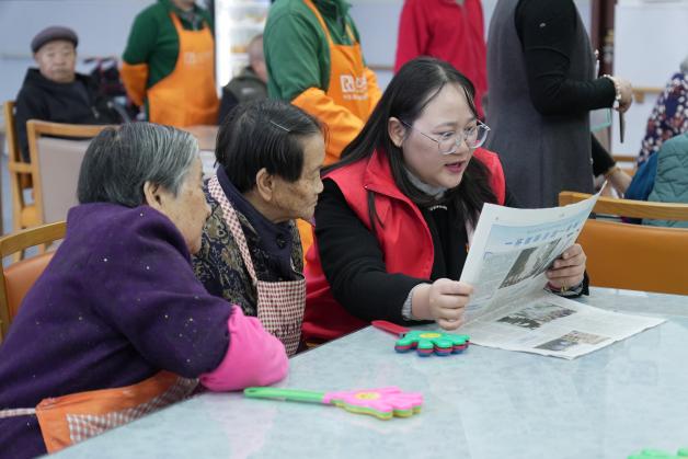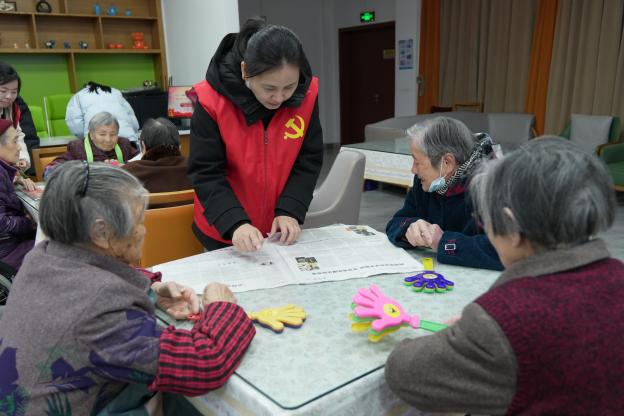 商学院的教师党员和学生志愿者们与老人们结对而坐,手持刊载有党的二十届四中全会精神相关报道及解读文章的报纸刊物,用清晰、缓慢的语速为老人们进行朗读。针对部分重点内容,师生们还结合自身理解,用通俗易懂的语言进行解释和阐述,耐心解答老人们的疑问。朗朗读书声中,党的二十届四中全会精神如涓涓细流,浸润心田。老人们认真聆听,时而点头表示赞同,时而与身旁的师生交流感想,现场气氛温馨而融洽。