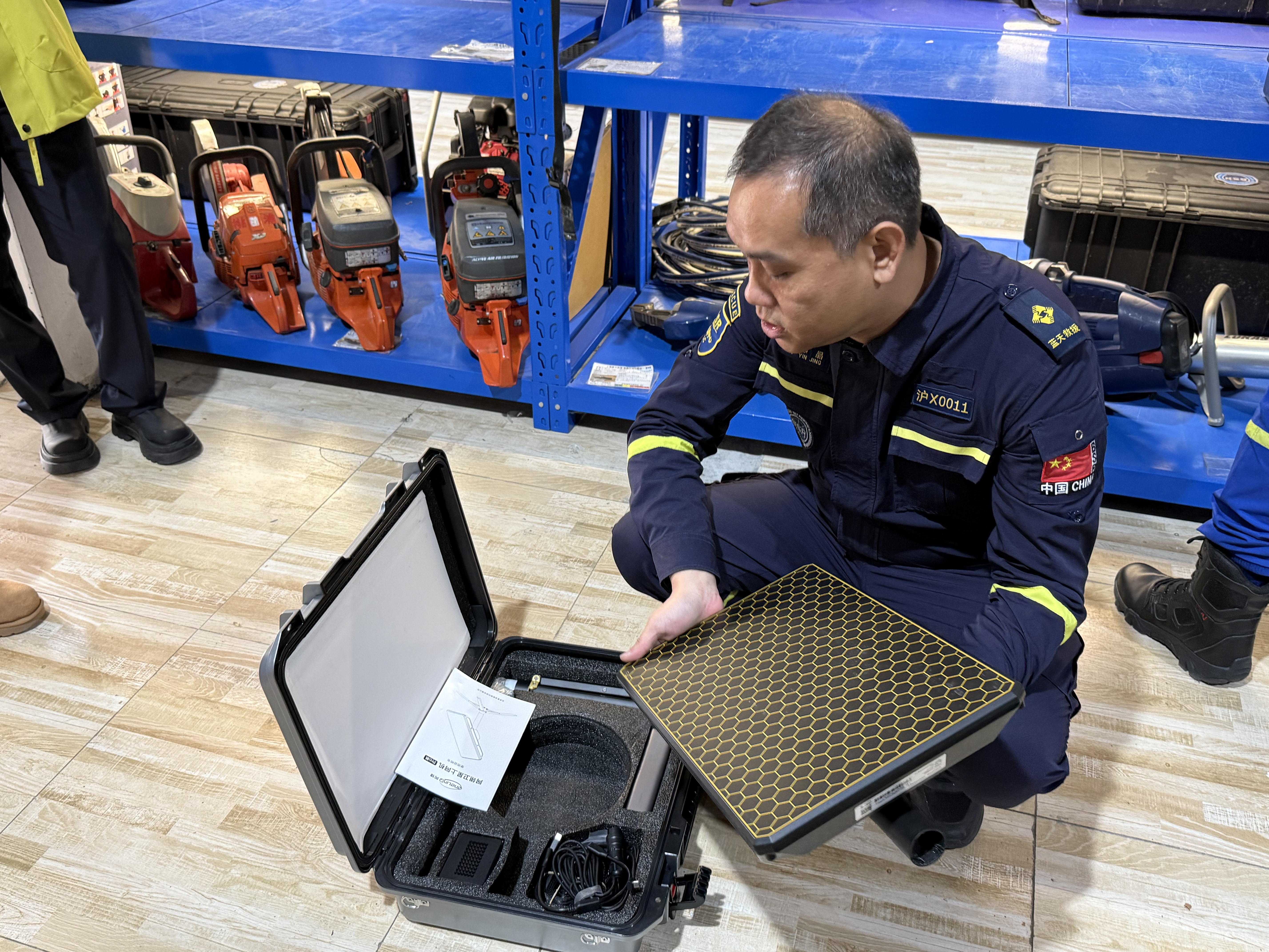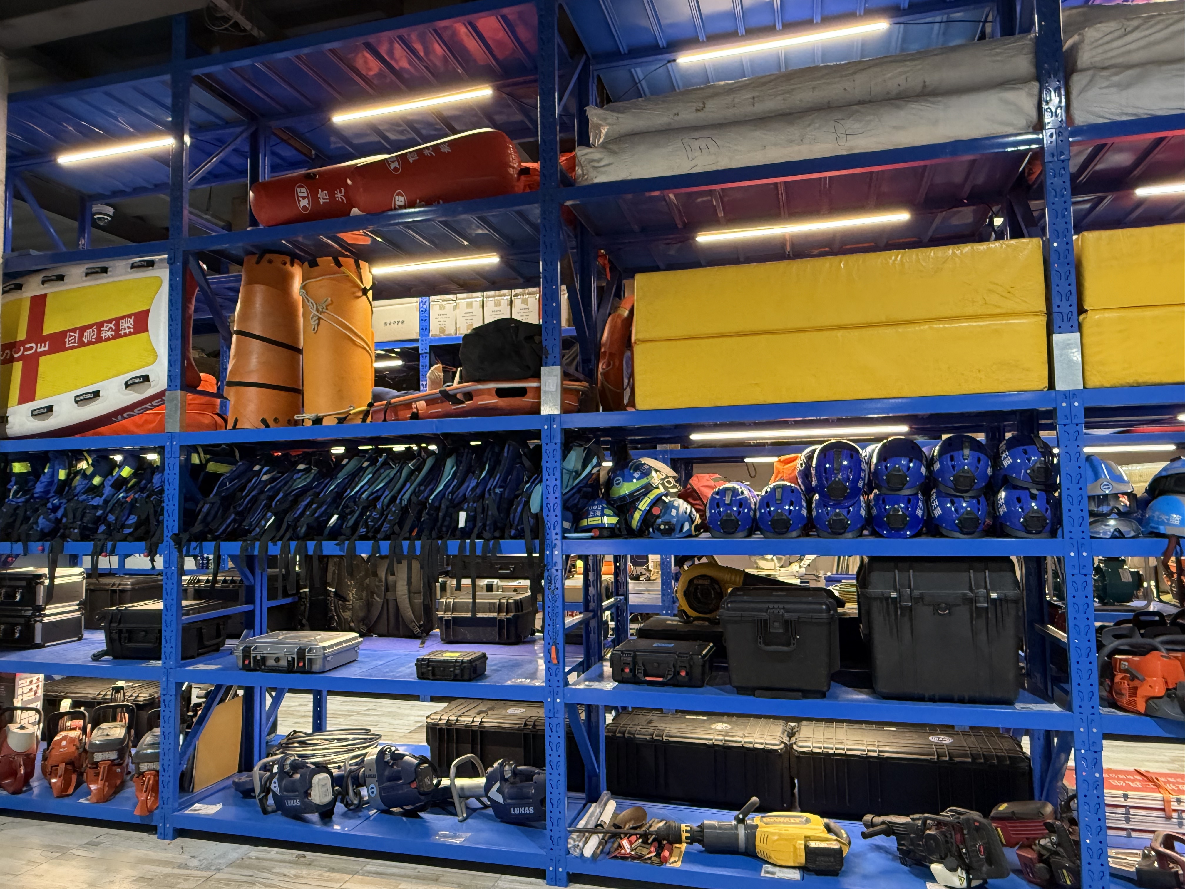 随后,在救援指挥中心队员的专业引导下,师生们深入参观了上海蓝天救援队的装备库房与日常运营指挥场景。通过对通讯调度、应急响应流程等运营场景的实地了解,同学们对这支专业救援力量的高效协作与后勤保障机制有了更为直观和系统的认识。各类专业的救援设备,如破拆工具、水域救援装备、医疗急救包、通讯器材等,引起了同学们的浓厚兴趣。救援队员耐心讲解了这些设备的功能、使用场景及操作要点。