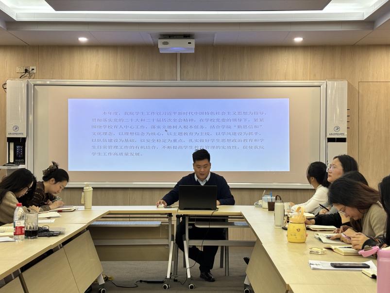 2026年1月19日,上海工商职业技术学院商学院在青浦校区105会议室召开本年度第一次全体教职工会议,全面复盘2025年工作成效,系统部署2026年重点任务。校长助理张扬出席并指导讲话,商学院党总支书记陈其主持会议,全院教职工参会。