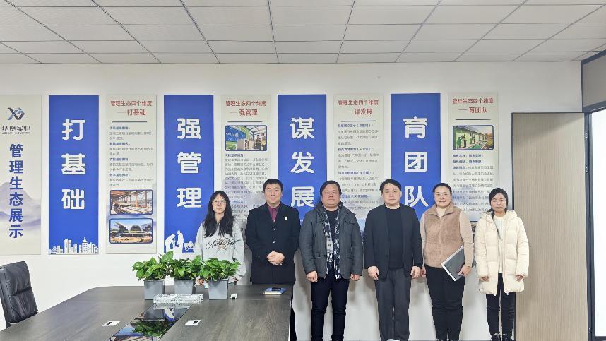为深入推进产教融合、深化校企协同育人机制,精准对接行业人才需求,拓宽学生实习就业优质渠道,2026年1月21日,上海工商职业技术学院商学院党总支书记陈其带队,携学生实习指导教师潘高峰、辅导员刘新雨一行赴上海结贤实业有限公司开展访企拓岗专项走访,公司项目部主任周冰、人事部经理胡萌热情接待走访团队,双方围绕人才培养、实习招聘、校企共建等核心议题开展深度座谈交流。